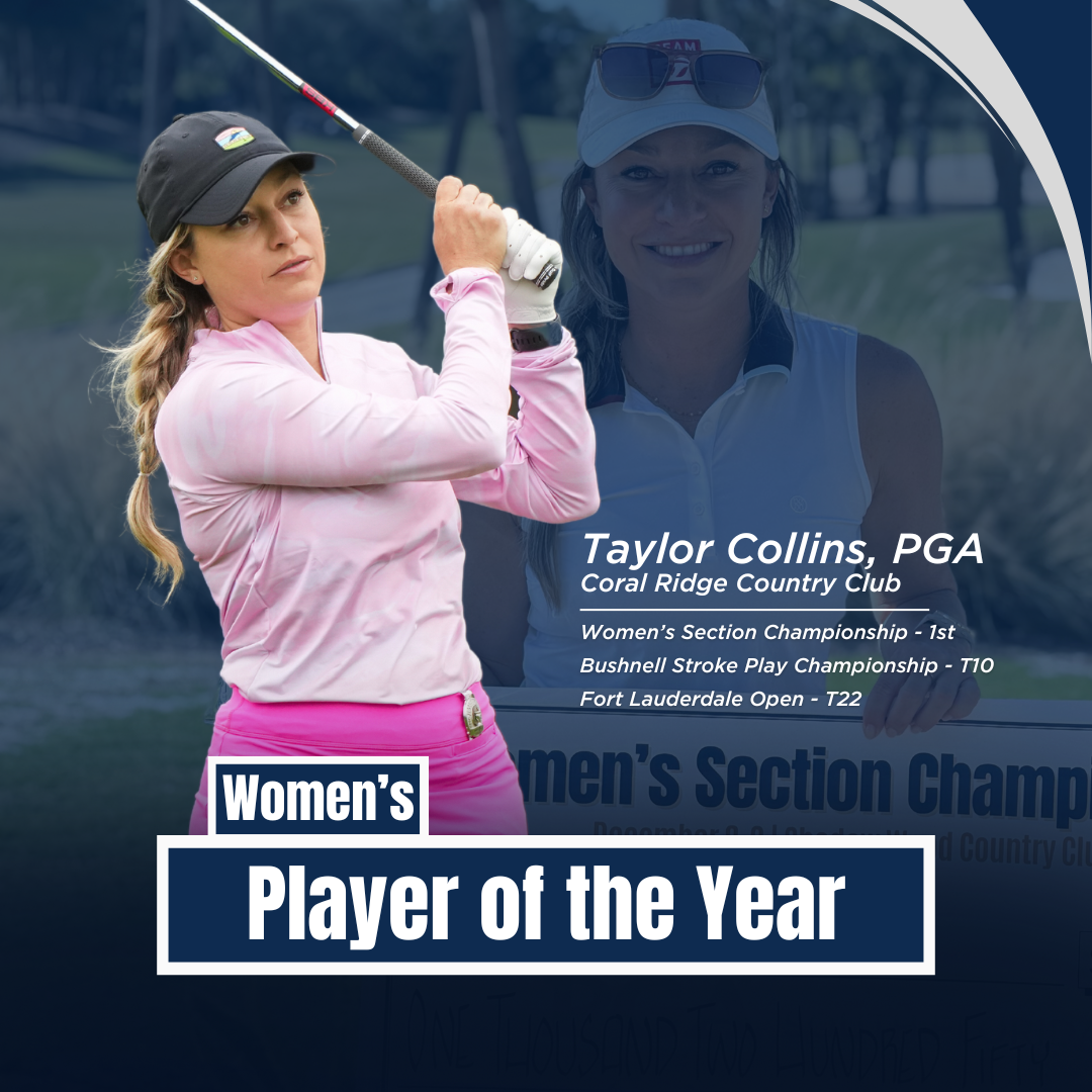 Determined by a season-long points race, the South Florida PGA Section honors a Section, Women’s and Senior Player of the Year for their outstanding play during the tournament season.