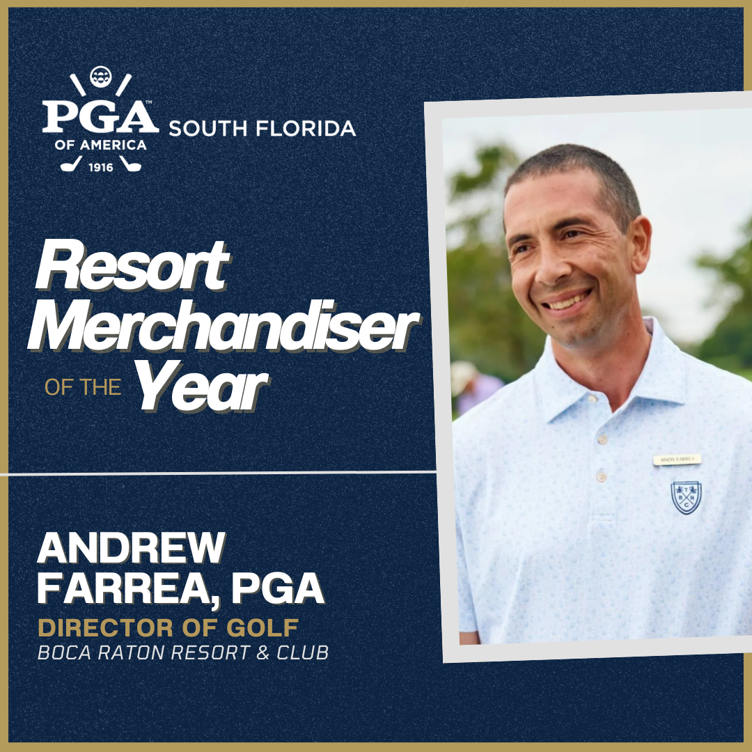 “It was shocking, surreal, and one of the greatest honors of my career.” These are the words of Andrew Farrea, PGA, on being awarded the 2025 South Florida PGA Merchandiser of the Year Award in the Resort category. In less than two years in the South Florida PGA Section, Farrea has already made a significant impact as the PGA Director of Golf at The Boca Raton Golf Club, driving substantial merchandise revenue growth and introducing data-driven strategies that elevate both the golf shop and member experience. Farrea’s journey started at Methodist University, where he studied Professional Golf Management, graduating as a PGA of America Golf Professional. Farrea then took his first job at Newport National Golf Club in Newport, Rhode Island as an assistant golf professional. Unsure if a career in golf was for him, Farrea set out to obtain his MBA, applying and being accepted into graduate school at the University of Mississippi. However, during that same time Newport National unexpectedly offered him the head golf professional position. Surprised by the offer, Farrea accepted the position and chose to forgo graduate school. Farrea credits Matt Adams, the former general manager at Newport National, for the guidance he provided, and recognizes Adams for serving as his first mentor in merchandising. Adams stressed the importance of strategic branding, market research, and the many ways to utilize that research to increase sales. Along with merchandising, Adams taught Farrea how to build a great team. “Matt showed me the importance of creating a culture that attracts and nurtures an outstanding group of individuals,” Farrea explained. Farrea stayed at Newport National for eight years before moving to Grand Cayman in the Cayman Islands as head golf professional at North Sound Golf Club. He was there for two years before moving to Ko Olina Golf Club in Hawaii, also as head golf professional. During Farrea’s time in the Aloha PGA Section, he was recognized with the Bill Strausbaugh Award in 2022. The Bill Strausbaugh Award recognizes PGA Professionals who distinguish themselves by mentoring their fellow PGA Professionals in improving their employment situations. At Ko Olina Golf Club, Farrea’s General Manager, Greg Nichols, became another mentor of his. Nichols taught Farrea to spend time gathering anecdotal research, diving into the data, and paying attention to the details that often go unnoticed. Farrea stayed at Ko Olina for four years before deciding he wanted to move back stateside, and fell in love with The Boca Raton Golf Club. Farrea continues to utilize what he has learned to build a great team culture and has seen how it positively affects merchandising. He fosters those working in the facility who aspire to become PGA Professionals one day, and has built an environment that accelerates growth. Farrea has structured outside operations as a fast-track program, with the goal of moving dedicated staff into assistant professional roles within a year. “We want to grow the PGA brand overall and our own property at the same time,” Farrea said. “It worked in Hawaii, and I can see it coming together here in Boca Raton.” This past year,The Boca Raton Golf Club, with the help of 2025 South Florida PGA - Southern Chapter Salesperson of the Year, Kris Saba of TaylorMade, brought a tour-fitting van to the facility, giving club members the opportunity to have a TOUR-level fitting experience. “It was an incredible day,” Farrea said. “In addition to the van, TaylorMade staffed the event with expert fitters building clubs on-site—just like they would for Rory and Tiger.” In just eight hours, the club had shattered a TaylorMade record, producing $75,000 in sales, which was approximately $25,000 more than the previous record. Farrea’s leadership, connections, and strategies led to him earning the Merchandiser of the Year Award in the Resort category. His short time at The Boca Raton Golf Club has been marked by significant growth, with sales increasing by almost 30% in the spring months and continuing to grow throughout the year. Farrea recognizes the significance of what he and his team have accomplished. “There's a lot of weight behind this award and I don't take it lightly,” Farrea said. “I'm very honored to receive it, and thankful to those who gave me the opportunity to do so.”